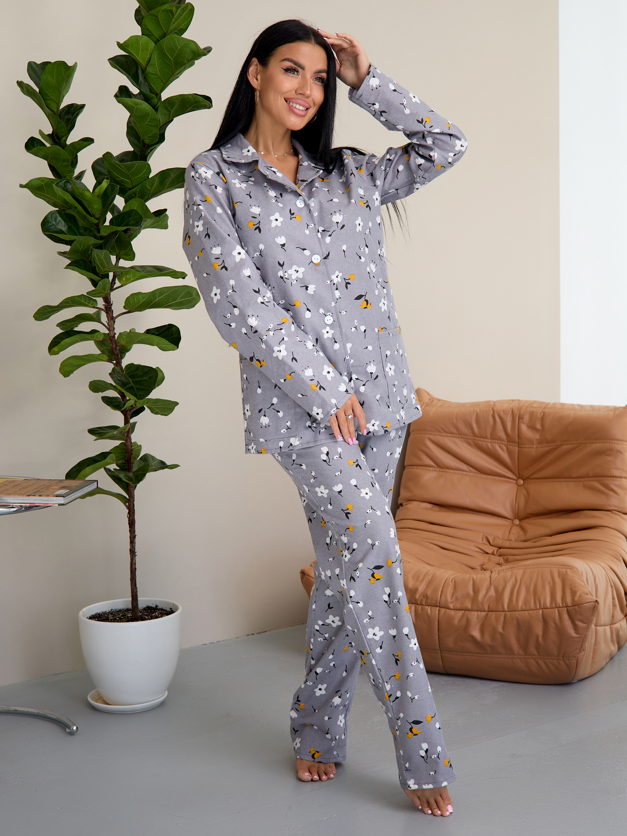 ГлавнаяЖенская одеждаФланельПижама женская м23 серая